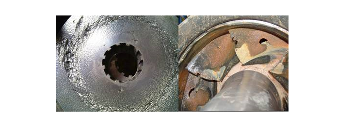 (1)造成材料破壞。汽蝕發(fā)生時,由于機械剝蝕于化學腐蝕的共同作用,使材料受到破壞。由于汽蝕現(xiàn)象的復雜性,所以其形成機理直到現(xiàn)在仍在研究探討中。一般認為水力沖擊引起的機械剝蝕,首先使材料破壞,而且是造成材料破壞的主要因素。 (2)產(chǎn)生噪聲和振動。汽蝕發(fā)生時汽泡的破裂和高速沖擊會引起嚴重的噪聲。另外,汽蝕過程本身是一種反復凝結(jié)、沖擊的過程,伴隨很大的脈動力。如果這些脈動力的頻率與設備的自然頻率接近,就會引起強烈的振動。如果汽蝕造成泵轉(zhuǎn)動部件材料破壞,必然影響轉(zhuǎn)子的靜平衡及動平衡,導致嚴重的機械振動。 (3)使離心泵的性能下降。泵汽蝕時,會使其性能下降。泵內(nèi)氣泡較少時,泵的性能曲線并無明顯的變化,這是汽蝕的初生階段。氣泡大量產(chǎn)生時,流道被“堵塞”,這時汽蝕已到了發(fā)達階段。表現(xiàn)在泵的性能曲線上,出現(xiàn)明顯的變化,性能曲線發(fā)生顯著下降,出現(xiàn)了“斷裂”工況。但是不同的比轉(zhuǎn)速泵,其汽蝕性能曲線下降的情況是不同的。