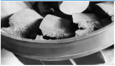 氣泡潰滅時(shí),液體質(zhì)點(diǎn)互相撞擊,同時(shí)也撞擊金屬表面,產(chǎn)生各種頻率的噪聲,嚴(yán)重時(shí)可聽見泵內(nèi)有“劈啪”的爆炸聲,同時(shí)引起機(jī)組振動(dòng)。葉輪局部在巨大沖擊的反復(fù)作用下,表面出現(xiàn)斑痕及裂紋,甚至呈海綿狀逐漸脫落,降低了泵使用壽命。