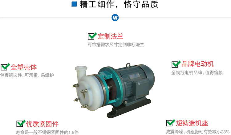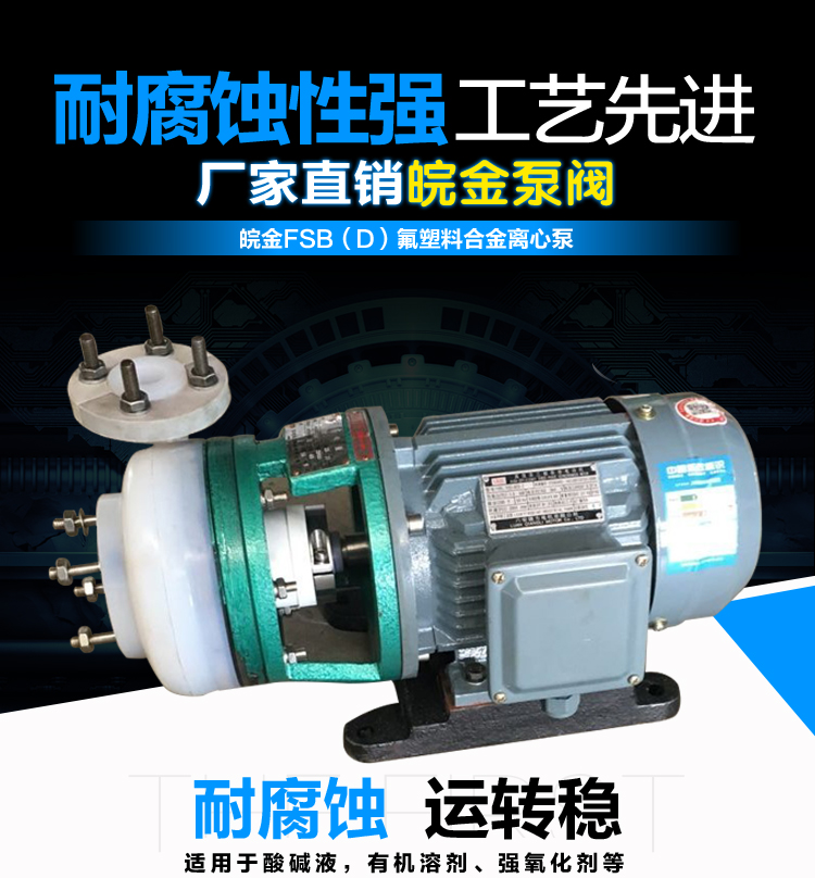 FSB短支架氟塑料離心泵,整機設計輕巧,結構緊湊,節(jié)省使用場地,依工況要求可選用氟塑料、氟合金等材料。