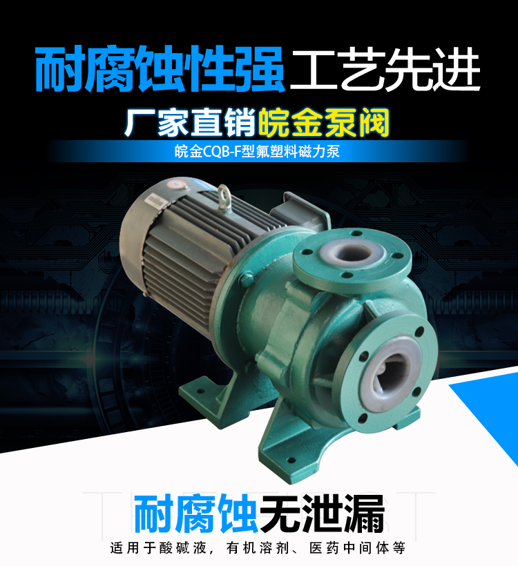 氟塑料磁力泵又稱其為氟塑料磁力離心泵、襯四氟磁力泵、氟塑料磁力驅動泵、耐腐蝕磁力化工泵,CQB-FJ襯塑磁力泵是我公司氟塑料磁力泵中的全新升級款型。氟塑料磁力泵另有:CQB-F經(jīng)典型、CQB-FA長支架型、IMD后拉式重型。