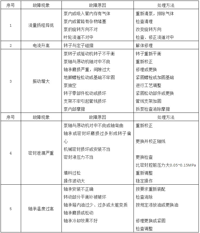 耐腐蝕泵是具有耐腐蝕性能的泵,適合輸送酸,堿,鹽等腐蝕性液體,對于耐腐蝕泵的故障及維修方法有哪些呢,常見的故障做出分析及加以解決,下表一目了然: